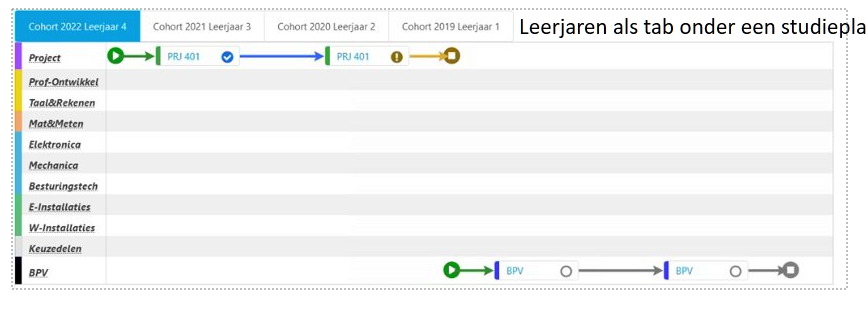 parts of a studyplan, like academic years in the study plan or specialisation routes and keuzedelen